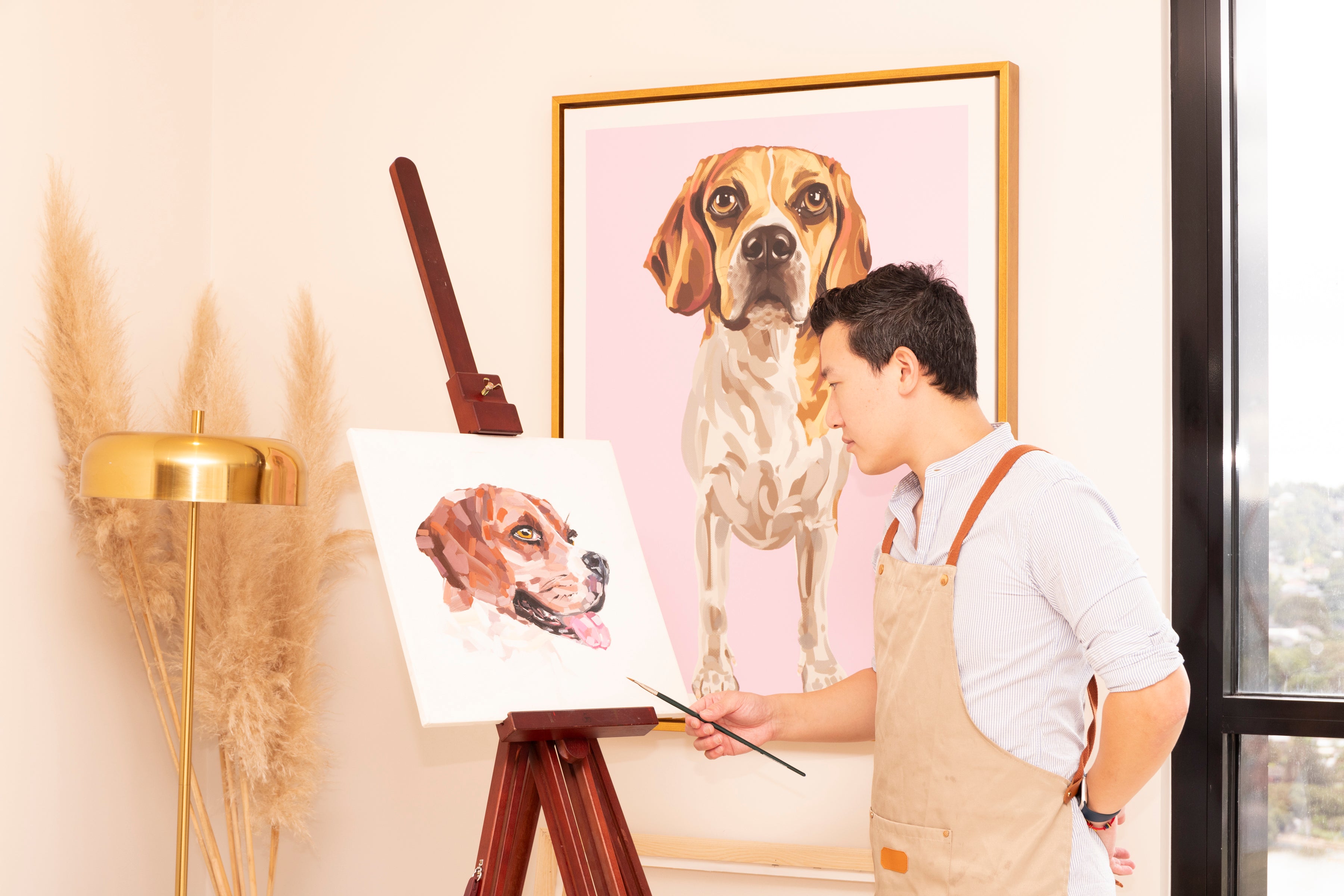 Originally trained in high-end architectural design, Wilfred found his true passion when he began painting his own dogs. Today, Studio Woof transforms favourite pet photos into heirloom-quality portraits, each one crafted with warmth, character, and care.